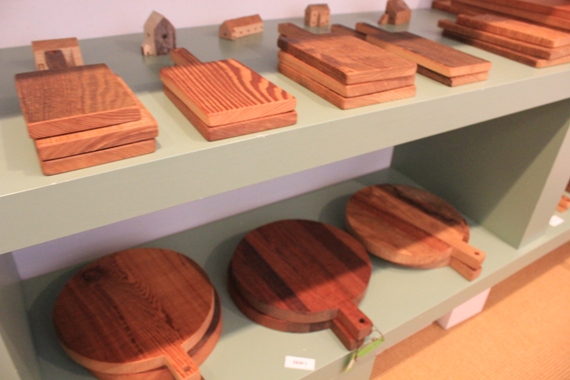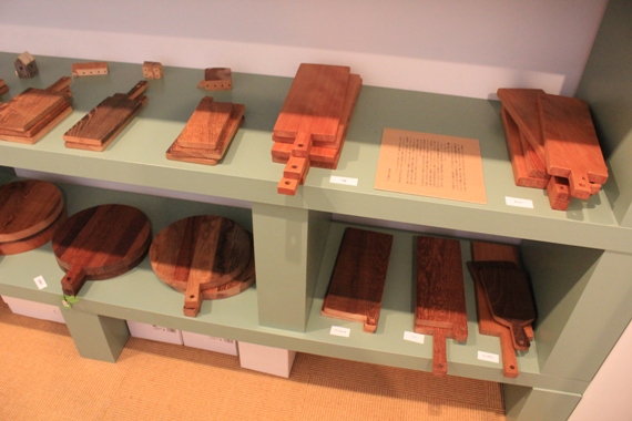 何種類もの樹種で丁寧に作られた、丸や四角のカッティングボードやコースター等。